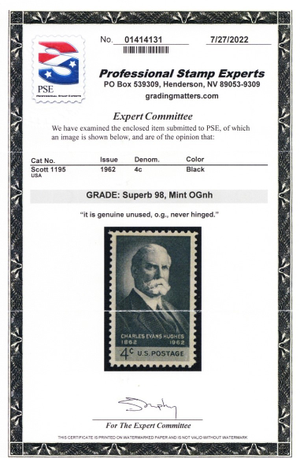 No refunds will be made after 60 days after the sale date unless extra time is granted. Due to the high cost of obtaining certificates we will only refund the cost of the stamp and not the cost of the certificate. For U.S. stamps only certificates from either APS, PSE or from the Philatelic Foundation are accepted, however "graded" certificates or "encased" items are not accepted.