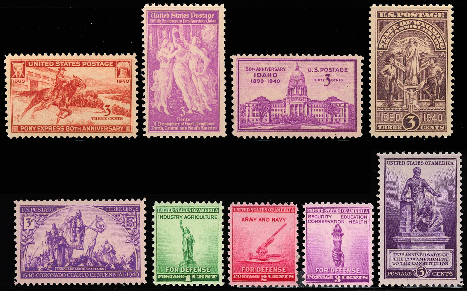 1940 Year Set of 9 Commemorative Stamps Mint NH - Stuart Katz