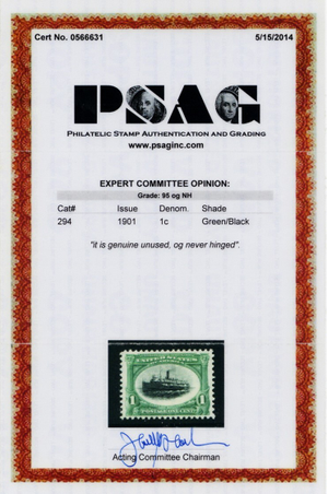 294, Mint XF NH 1¢ - With Graded 95 PSAG Certificate - Stuart Katz
