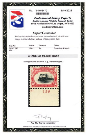 295, Mint XF NH 2¢ Train With PL# - PSE Graded 90 Certificate * Stuart Katz