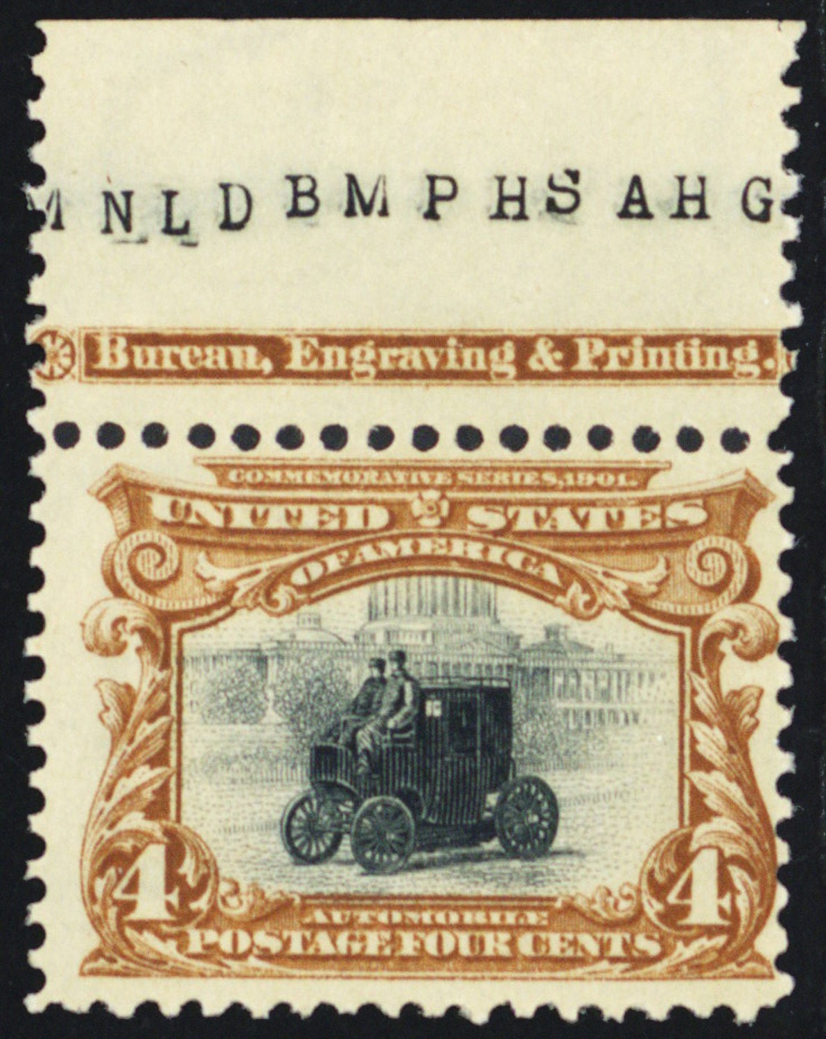 296, Mint NH 4¢ - Imprint & Typewriter Lettering at Top SCV $170 - Stuart Katz