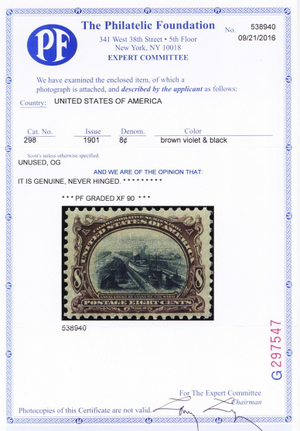 No refunds will be made after 60 days after the sale date unless extra time is granted. Due to the high cost of obtaining certificates we will only refund the cost of the stamp and not the cost of the certificate. For U.S. stamps only certificates from either APS, PSE or from the Philatelic Foundation are accepted, however "graded" certificates or "encased" items are not accepted.