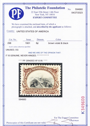298, Mint XF/Superb NH 8¢ - With Graded 95 PFC Certificate - Stuart Katz