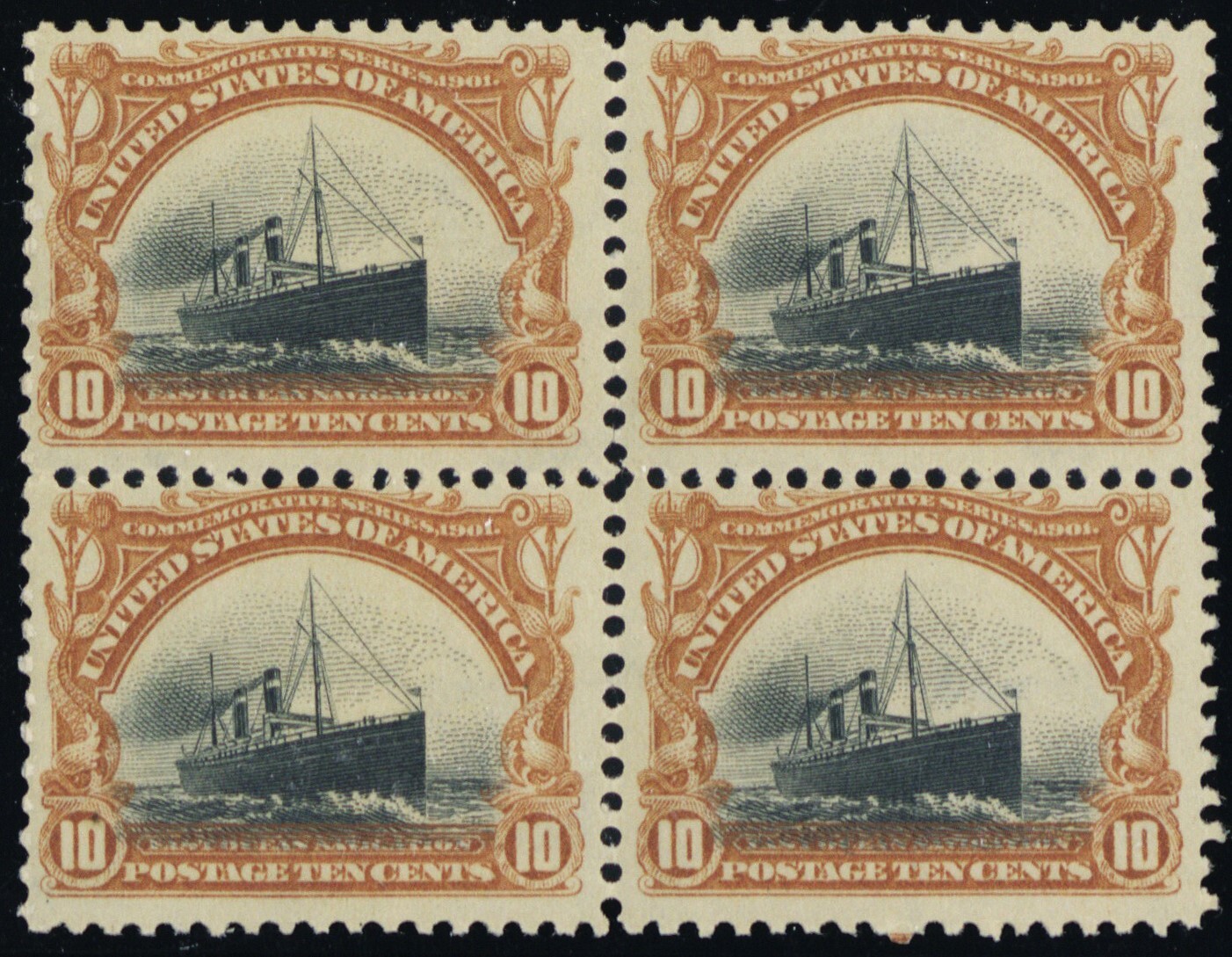299, Mint F-VF NH 10¢ “Sinking Ship” Block of Four SCV $1200 * Stuart Katz