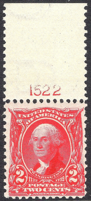 F-VF MNH OG Scott #301 2-cent Washington issue Plate number single, on double line watermarked paper from the always popular series of 1902. Sharp looking stamp with really nice shade of red.