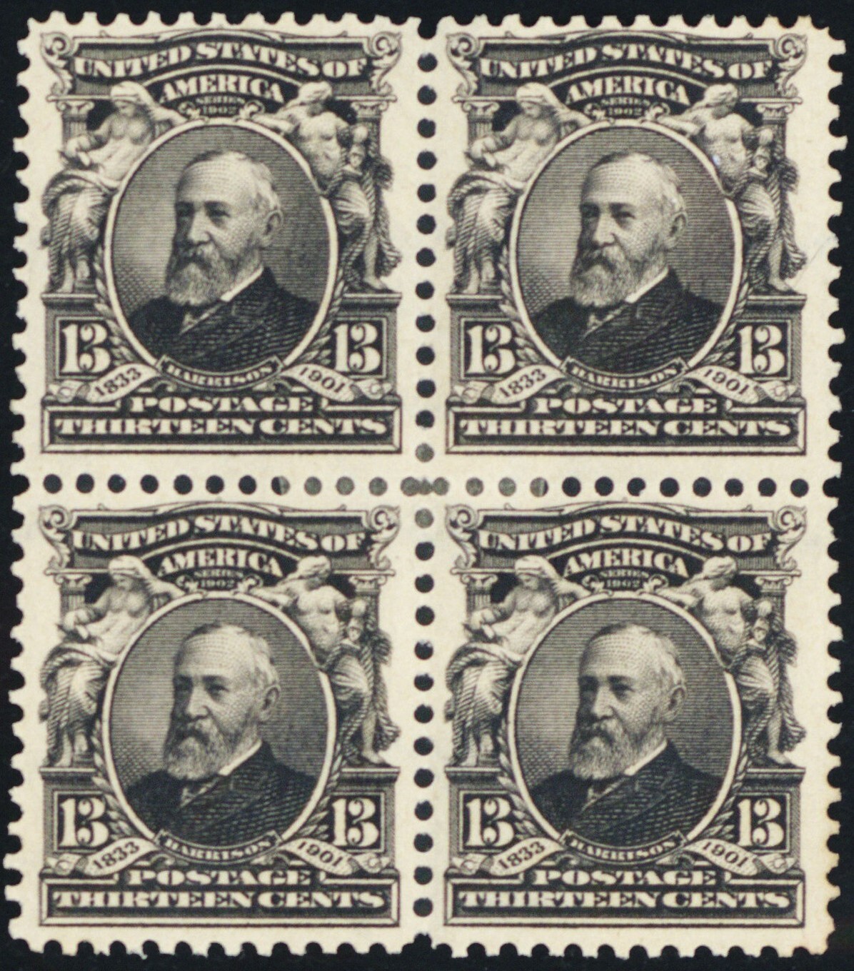 308, Mint H 13¢ FVF Block of Four Stamps SCV $175 - Stuart Katz