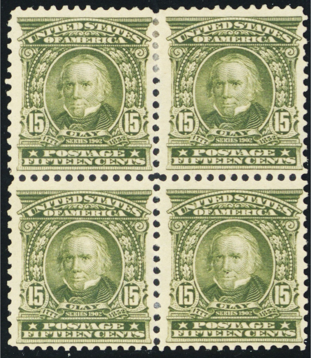 309, Mint HR/LH 15¢ FVF Block of Four Stamps SCV $775 - Stuart Katz