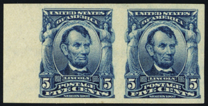 315, Mint NH 5¢ Imperf - Superb GEM Margin Pair - Stuart Katz