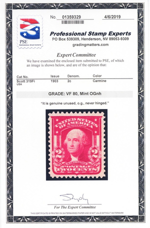 319Fi, Mint VF NH 2¢ - Graded 80 (Under Graded) PSE Certificate - Stuart Katz