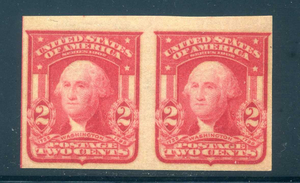 320b pair, 1906 2¢ Scarlet, Mint NH, Scott $80