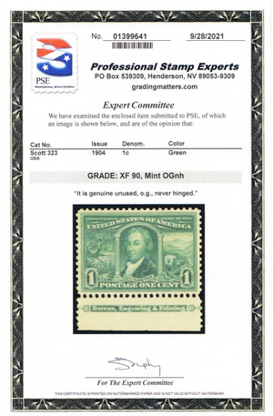 323, Mint XF NH 1¢ - With PSE Graded 90 Certificate - Stuart Katz