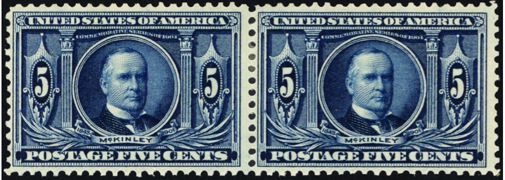 326, Mint FVF H 5¢ Pair - McKinley Stamps SCV $140 - Stuart Katz