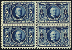 326, Mint NH/LH 5¢ - Block of Four - SCV $500 - Stuart Katz