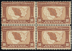 327, Mint Fine NH 10¢ Block of Four SCV $1200 * Stuart Katz