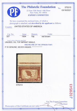 Due to the high cost of obtaining certificates we will only refund the cost of the stamp and not the cost of the certificate for stamps that sell for less than $250 that come back with a negative certificate. Stamps that sell for above $250 will receive a full refund for both the price of the stamp and cost of the certificate if it should come back not as described. For U.S. stamps only certificates from either APS, PSE or from the Philatelic Foundation are accepted, however "graded" certificates or "encased" items are not accepted.