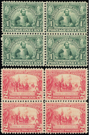 328-29, Mint Fine NH 1-2¢ Blocks of Four SCV $640 * Stuart Katz