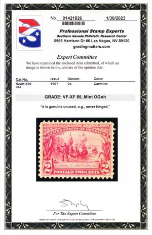 329, Mint VF/XF NH 2¢ - PSE Graded 85 Certificate * Stuart Katz