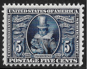 #330 VF MNH OG-5¢ JAMESTOWN POCAHONTAS-VERY NICE STAMP (REM #330-829)