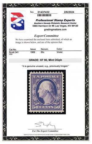 341, Mint XF LH 50¢ With Graded 90 PSE Certificate - Stuart Katz