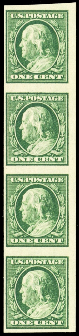 343V, MNH VF Imperforate Coil Strip/4 From Freshly Broken Roll -- Stuart Katz