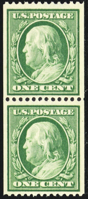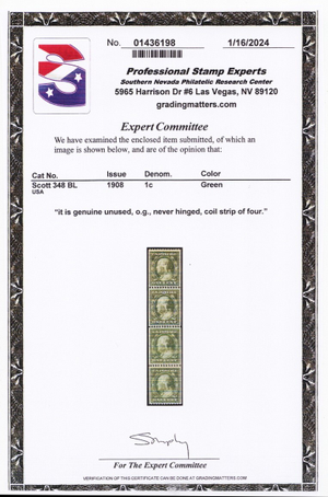 348, Mint VF NH 1¢ Coil Pair - With (copy) PSE Certificate - Stuart Katz