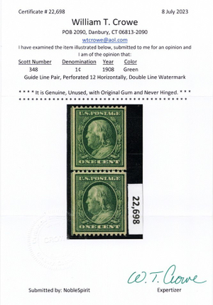 348, Mint VF NH Coil Line Pair With Certificate - Stuart Katz