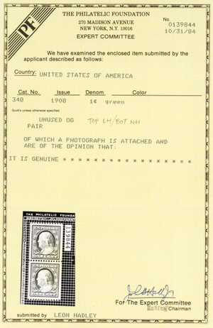 No refunds will be made after 60 days after the sale date unless extra time is granted. Due to the high cost of obtaining certificates we will only refund the cost of the stamp and not the cost of the certificate. For U.S. stamps only certificates from either APS, PSE or from the Philatelic Foundation are accepted, however "graded" certificates or "encased" items are not accepted.