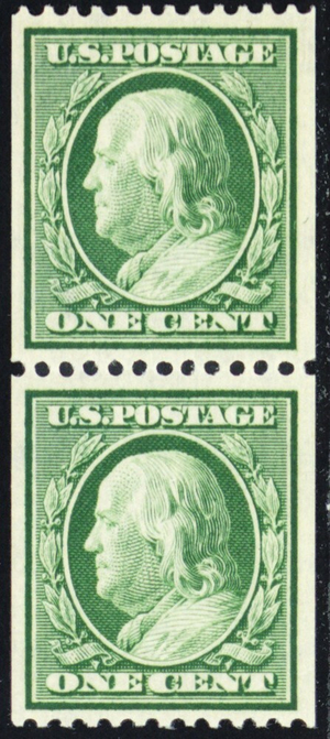 348, Mint VF/XF NH 1¢ Coil Pair With (Copy) PFC Certificate * Stuart Katz