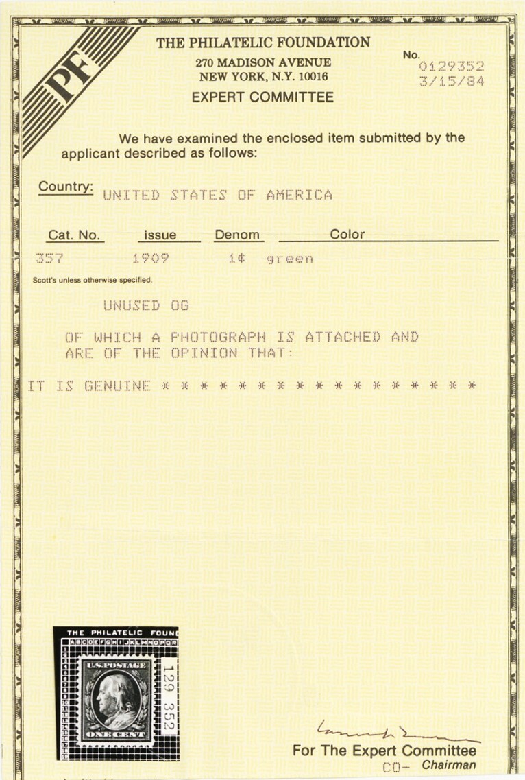 No refunds will be made after 60 days after the sale date unless extra time is granted. Due to the high cost of obtaining certificates we will only refund the cost of the stamp and not the cost of the certificate. For U.S. stamps only certificates from either APS, PSE or from the Philatelic Foundation are accepted, however "graded" certificates or "encased" items are not accepted.