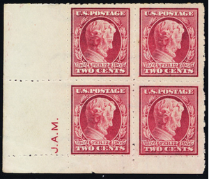 368, Mint NH (1 HR) 2¢ Private Perforation Block With Initials * Stuart Katz