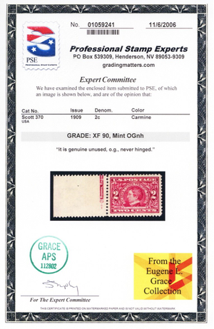 370, Mint XF NH 2¢ - PSE Certificate Graded 90 * Stuart Katz