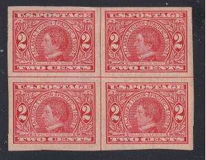 #371 2c FULTON-VF Hinged OG CENTER LINE BLOCK OF 4-L@@K!! (REM #371-4) 2-cent Seward -Alaskan Yukon-Pacific Expo issue on double line watermark paper issue. Top 2 stamps hinged bottom are MNH.