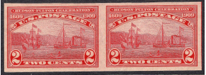 Scott# 373 Superb MNH OG 2¢ Imperfed horizontal pair issue from the Hudson Fulton Celebration series depicting "Fulton's Steamship". A real beauty with great gum.