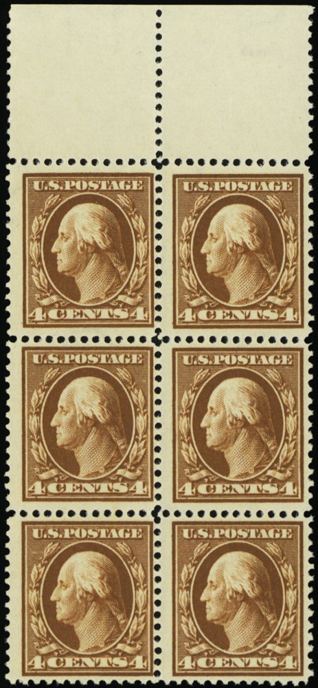 377, Mint 4¢ VF NH Block of Six Stamps VERY FRESH Cat $390.00 - Stuart Katz