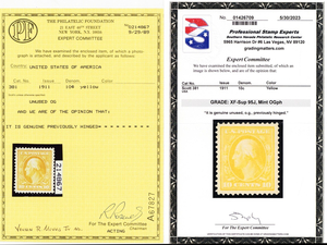 No refunds will be made after 60 days after the sale date unless extra time is granted. Due to the high cost of obtaining certificates we will only refund the cost of the stamp and not the cost of the certificate. For U.S. stamps only certificates from either APS, PSE or from the Philatelic Foundation are accepted, however "graded" certificates or "encased" items are not accepted.