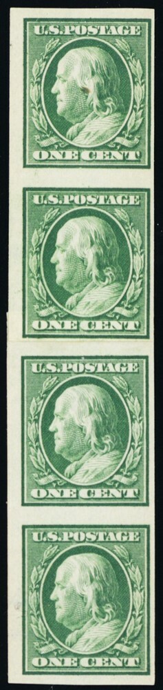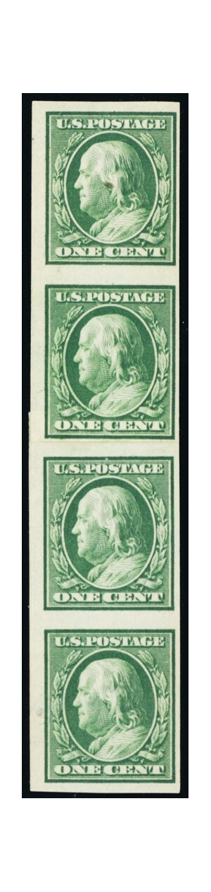 383V, Mint F/VF NH Imperforate Coil Vert Paste-Up Strip of Four --- Stuart Katz