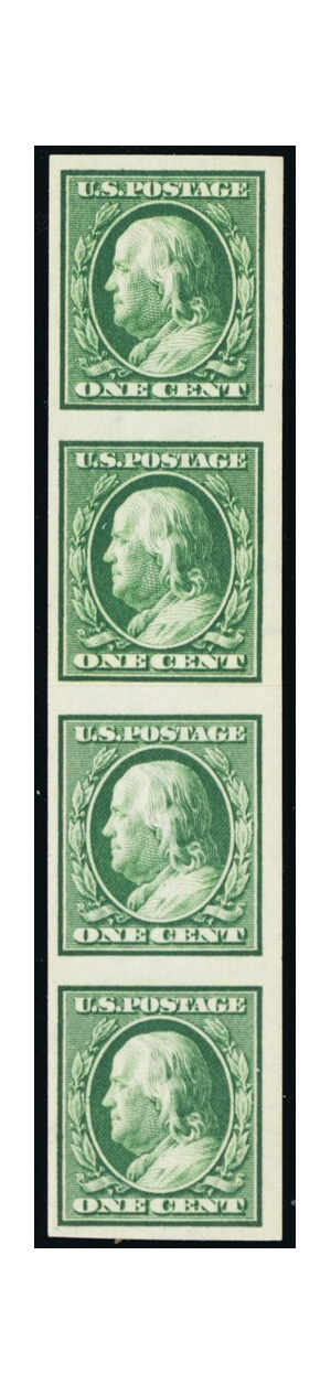 383V, Mint VF NH Imperforate Coil Vert Paste-Up Strip of Four - Stuart Katz
