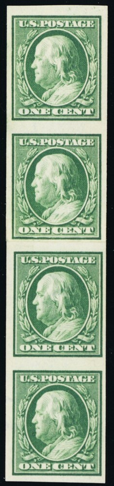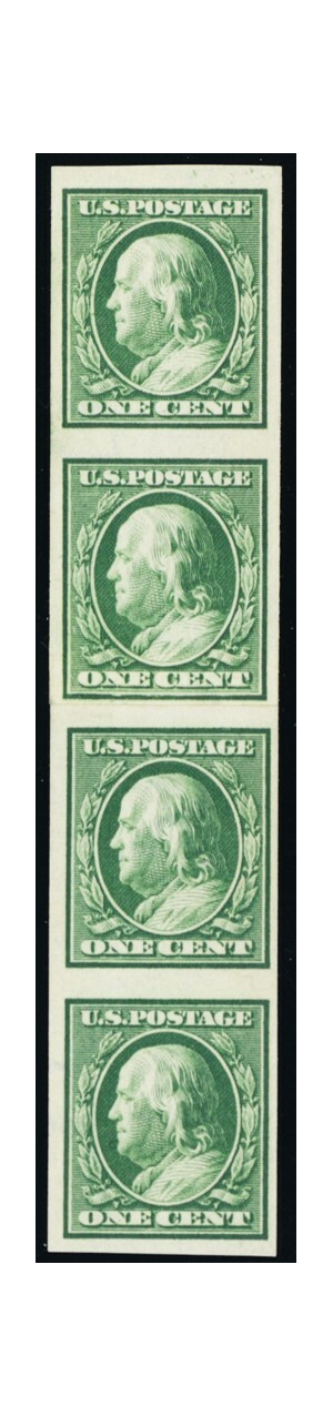 383V, Mint VF NH Imperforate Coil Vert Paste-Up Strip of Four -- Stuart Katz