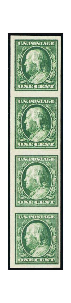 383V, Mint VF NH Imperforate Coil Vertical Paste-Up Strip of Four - Stuart Katz