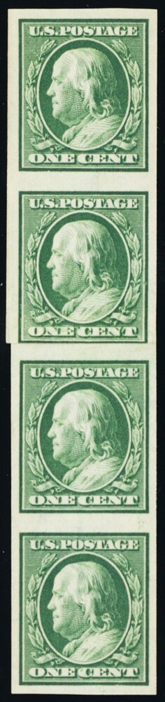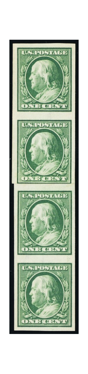 383V, Mint VF NH Imperforate Coil Vertical Paste-Up Strip of Four -- Stuart Katz