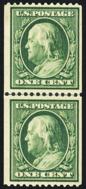 385, Mint LH/NH 1¢ - Coil Line Pair SCV $400.00 - Stuart Katz