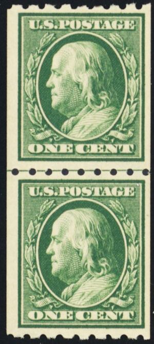 390, Mint VF NH 1¢ Coil Line Pair - Stuart Katz
