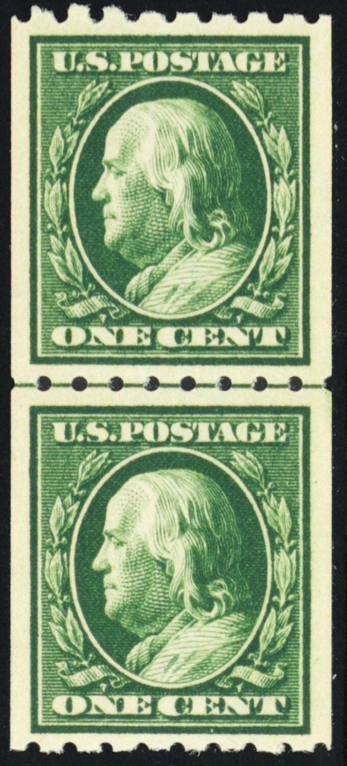 390, Mint VF/XF NH 1¢- Coil Line Pair * Stuart Katz Description: