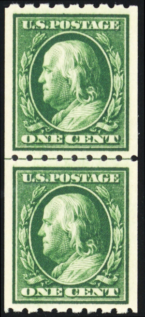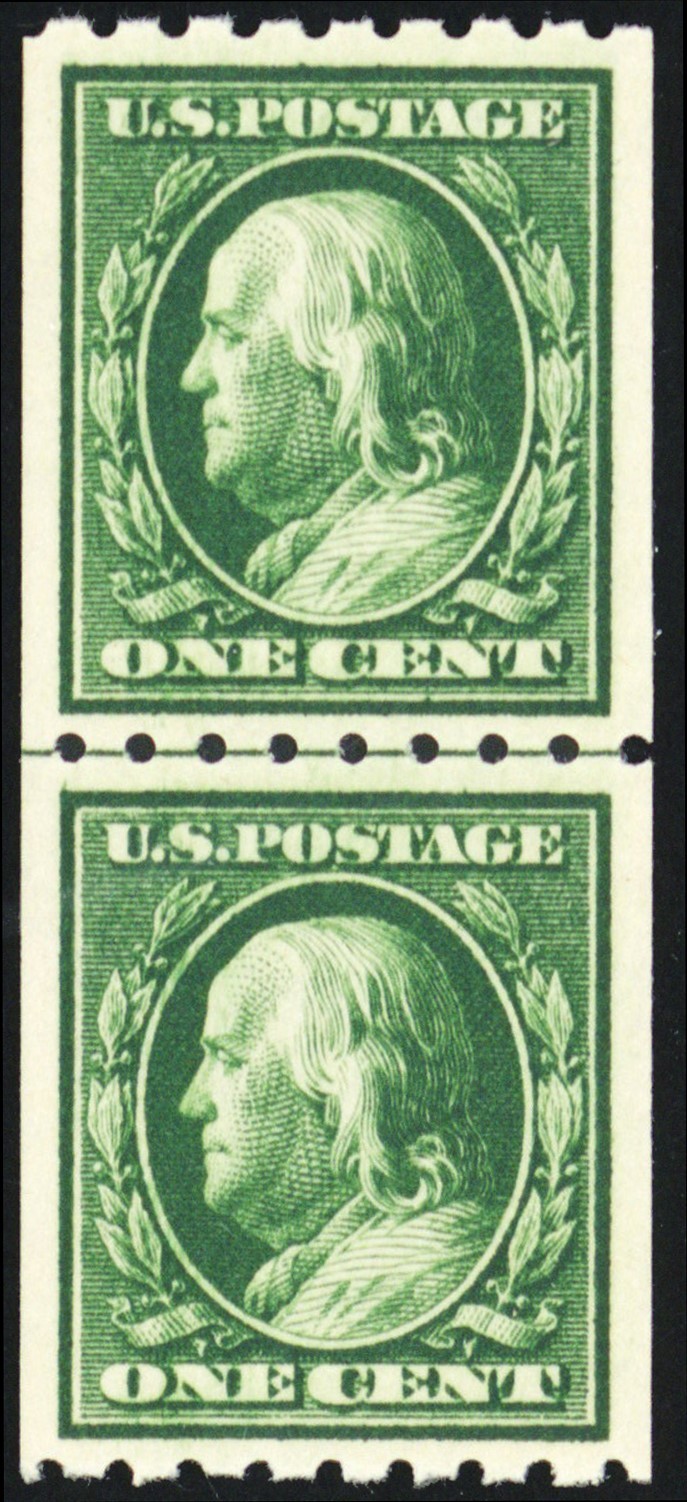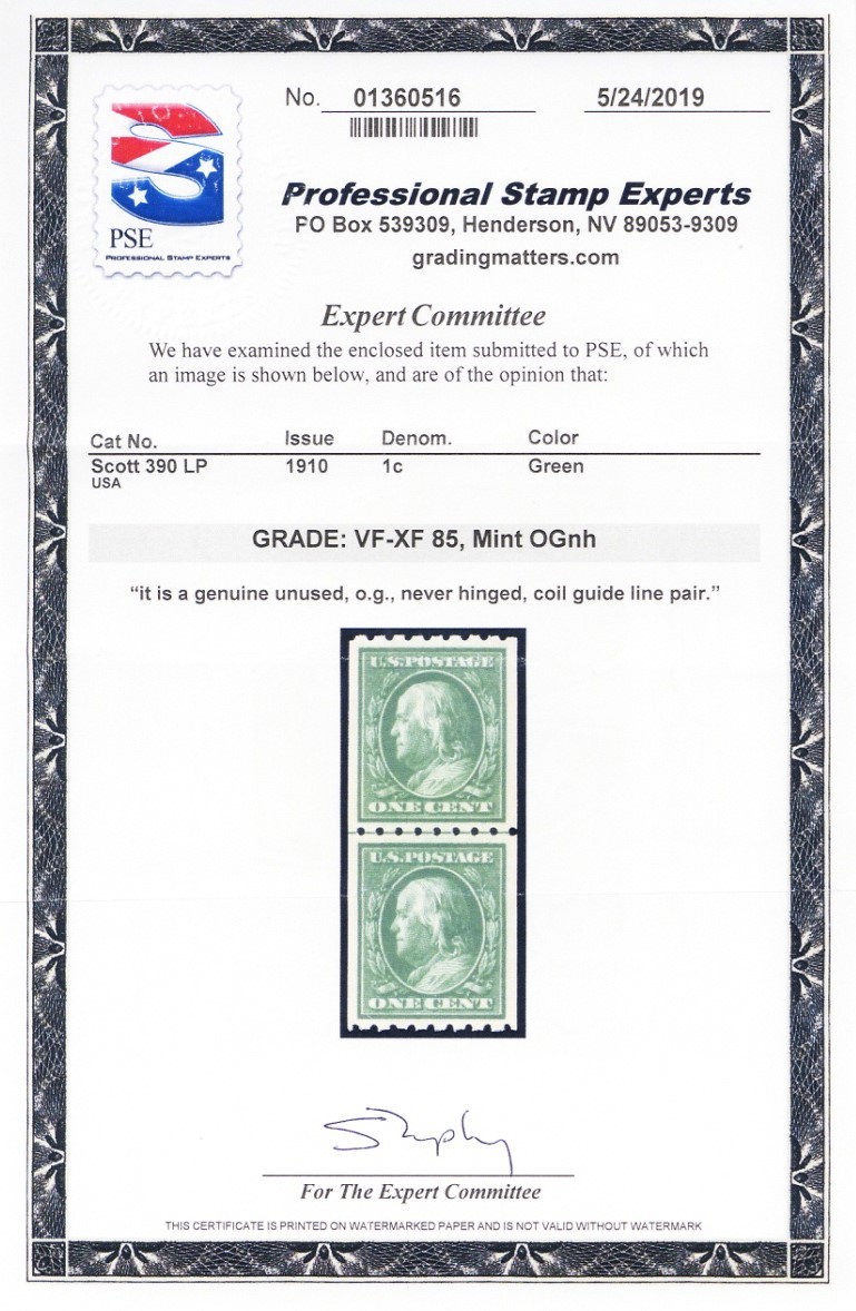 390, Mint VF/XF NH 1¢ Coil Line Pr With Graded 85 PSE Certificate - Stuart Katz