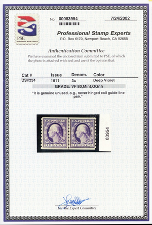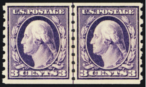 394, Mint VF NH 3¢ Coil Line Pair SCV $925 - Stuart Katz