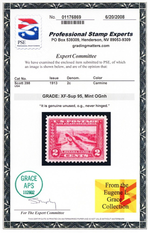 Due to the high cost of obtaining certificates we will only refund the cost of the stamp and not the cost of the certificate for stamps that sell for less than $250 that come back with a negative certificate. Stamps that sell for above $250 will receive a full refund for both the price of the stamp and cost of the certificate if it should come back not as described. For U.S. stamps only certificates from either APS, PSE or from the Philatelic Foundation are accepted, however "graded" certificates or "encased" items are not accepted.