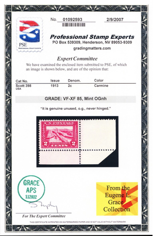Due to the high cost of obtaining certificates we will only refund the cost of the stamp and not the cost of the certificate for stamps that sell for less than $250 that come back with a negative certificate. Stamps that sell for above $250 will receive a full refund for both the price of the stamp and cost of the certificate if it should come back not as described. For U.S. stamps only certificates from either APS, PSE or from the Philatelic Foundation are accepted, however "graded" certificates or "encased" items are not accepted.