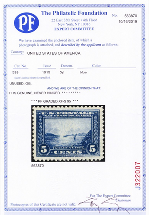 399, Mint 5¢ XF/Superb NH - Graded 95 PFC Certificate * Stuart Katz