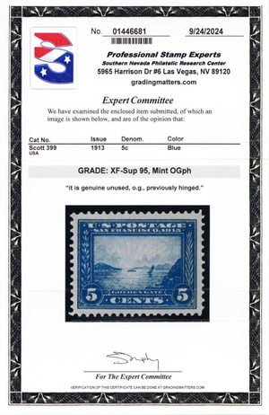 399, Mint LH 5¢ With Graded 95 PSE Certificate - Stuart Katz