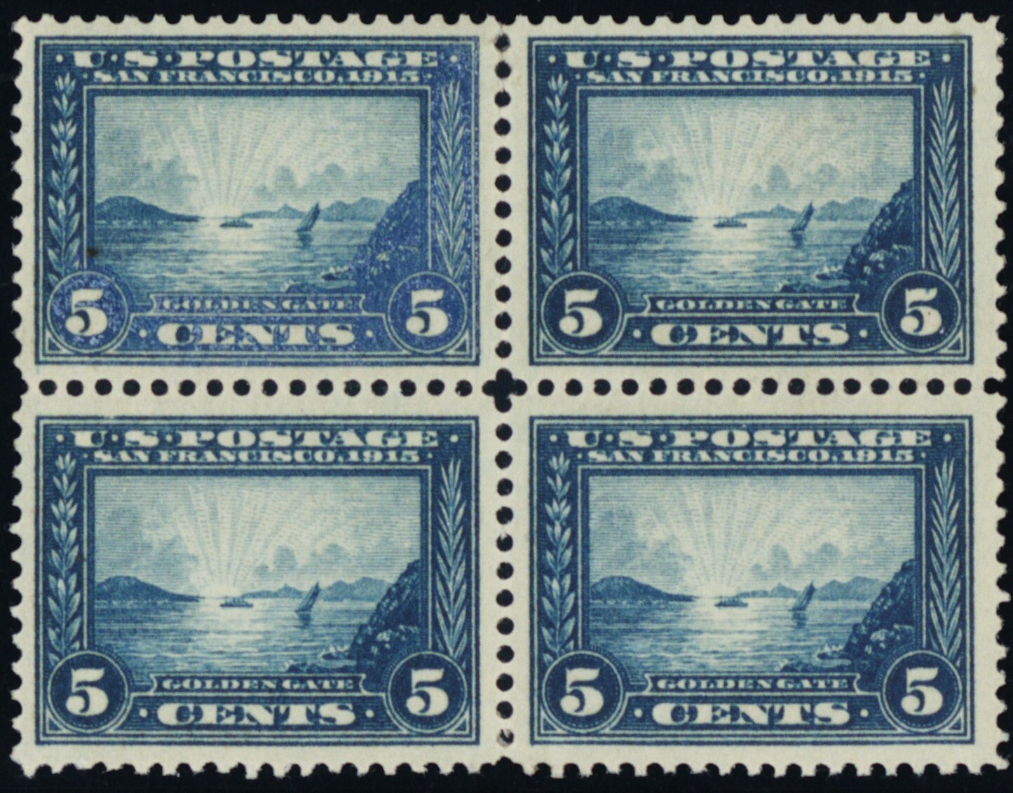 399, Mint VF Small H 5¢ Block of Four SCV $280 * Stuart Katz